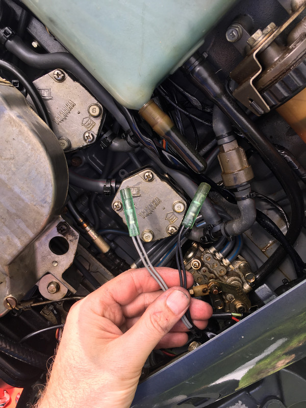 The engine runs fine, but I found these two wires laying inside the upper casing on the port side with no obvious place to connect them to. I started to trace them backwards, but got sidetracked and forgot about it. The engine is in Maine... I'm in PA. I also tried to ID them by looking through my SM, but no luck (or at least I didn't look in the right place). Are they just extra? Used for some sort of diagnostics? I thought the Winky Blinky used a square, plastic connector...