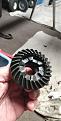 now to master Yoda-coes' question...lol.....I guess a little back story is required to "clarify" a possible misunderstanding of words i choose to use...I've gota 89 13.3 Hobie power skiff..( the Hobie Hopper) if memory serves me correctly...Came with a 40 yamaha on it from the factory..they were "rockets"...when i acquired mine...it had a great running 81 evi 25 RCLI (107 lbs..sits in the water perfect to my eye) on it..But..It had , no key,steering wheel or trim/tilt...The Bolts from the yami r still there.still sealed..SOOO...off i go in search of the Holy Grail)...a 3 cyl i was supposing....(189 lbs + 0r minus a few) After running around half of fl. looking at motors (98% salties an a few sweetwaters)..im still without what I want..I kept seeing an old beat up early 90's 40 with a blown cyl on craigs for MONTHS...Finally I see one 10 minutes from me, that was on a beer barge in lake Hernando...Been sittin for two years.was "supposidly" running when they pulled it off..i get there ..Its locked up tighter than a ****s hat band...everytthing came with it..cables, side mount controls,helm,,,,& a TRIM ooooh boy...it wont shift, prop wont budge, buy it did seem to wana move when i tryd pulling the starter handle... after talking with the woman i walk away with everything for $300.im thinkn the lower is just bad..maybe the rings were frozen to the walls after its 2 yr snooze..no problem..at that price i cud part it out if need be.....get it home, hang it on a motor stand..pop the top & puller.only to find out.....its a two cylinder c motor.C40PLRR....SHIT.....take a breaker bar,try to move it..i geta bout 2" travel...all righty then..lower unit...pull it..now it spins by hand n puffs at me big time..pull the drain plugs on lower..chicken feathers dust & cobwebs come out...lol..this things is LOCKED up...do a nada search ..148 lbs i believe but nada says its 3cly...now im happy again...didnt really want the extra 80 lbs on this 13' boat..I take this lower to every guy in town...even was so desperate as to go to a couple dealers...fancy factory trained yami emblems n all...nobody wants to touch it....all i kept hearing is ...it aint comin apart in one piece..no parts BLA BLA BLA...as im explaining the motor to them..showin pics n what not....none of um can believe this motor has..dual carbs,pull & electric start & tilt...ok...Im just a rookie...im no boat mechnic by even MY wildest imagination...But ..Im am an old tool maker from detroit...if its metal..it my friend..lol...so it dawns on me ..that parts motor i been seein...looks pretty familiar...i call the guy..hes still got it....i go look at this $400 parts motor to find its identicle to mine...lowers smooth as butter thru my stethascope...COOOL...oh the guys says...i sold the lower last nite...UNREAL....this thing has been a fight since day one....no one can find a lower thats fresh water....So outa desperation....I tear into this thing...Im thinkn..Im gettin this think apart if it kills me...sooo. a little white vinegar, then some diesel & tranny concoction for a few day soak n various & sundry ol indian tricks.......n WHA LA...its stripped to a bare case...NO BROKEN CARRIER OR CASE....gears cleaned up just fine....there might be a 1/64 (according to my radius gauges) roll on the dog teeth n the same on the gears...ALL bearing are TOAST...So now I gota find the specs to put this thing back together....Im googlin every which way..lookin for a FACTORY..(not that clymer crap) manual....i stumble on to this site and NOW im thinkn im home free...After lurking an reading some of Boscoes post..Im even happier...This guy knows his shit im sayn to myself....so when i finally locate a manual....Its a read only..an because of the corvid craze sweepin the country...I cant geta hard copy...HENCE my UNREAL statement...am i suprised I cant find a factory manual on a 27 year old two stroke...not at all..lol But..this little witch has been a fight since day one...so every time i think im gettn over the hump..an another wall goes up...I cant think of any other word than.... UNREAL.... No offence meant to anyone one the site...everybodys been cool answering questions n helpin my ignorance in outboard related matters....heres some pics of my UNICORN..from what the factory guys said...lol...well crap..my files exceed the max..how do i show pics gang????