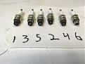 first 5 appear most dry with electrode ceramic white and black around first 2 threads. #6 is wet with black electrode and ceramic and no black build up around threads.