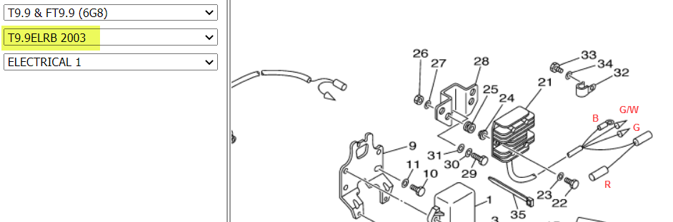 I have a 2002 9.9 (T9.9ELRB) that lost a regulator/rectifier from a bad battery switch (charging 15.5). The original unit is obsolete with only an aftermarket replacement R/R available. The original unit has a wire (white with green stripe) that the replacement doesn’t have. Book shows it goes through lighting coil to ground. The question is, will the motor still charge the battery and will it hurt anything to run the motor without that white/green coming from the stator being connected to anything? The remaining wires - Black, red, green and green with white stripe are all the same on both units and have the same plug configuration. Thanks in advance for any info.