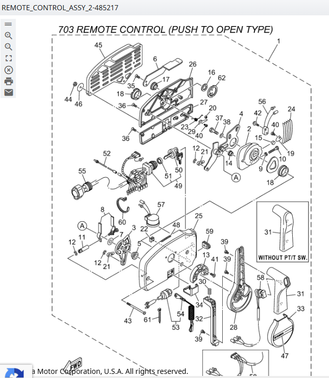 breakdown of the 703 control box can be found in the parts catalog section (under rigging) at www.yamahaoutboards.com